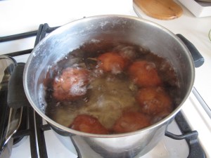 We started out with these standard ingredients – smaller red potatoes work best. Ken, the season expert, added the seasonings pictured below.