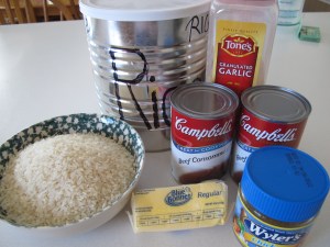 Don’t confuse this Beefy Rice with brown rice. I am not a lover of brown rice and I love this rice. I have served it many times for family parties and everyone loves it. The best part – it is so easy to make. You just dump all the ingredients in a 9 x 13 baking pan and bake it in the overn. You do need to plan ahead though. It take 1 1/2 hours to bake.