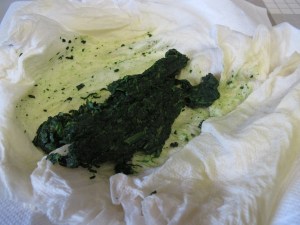This isn’t a very attractive picture but I have found this method works the best for getting all the water out of the spinach.