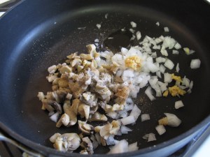 Heat oil in a non-stick skillet. Add chopped onion, gralic, chopped mushrooms, bon appetit seasoning, pepper and nutmeg and saute over medium heat until onions are tender.
