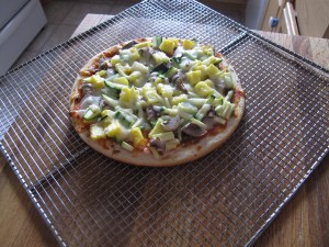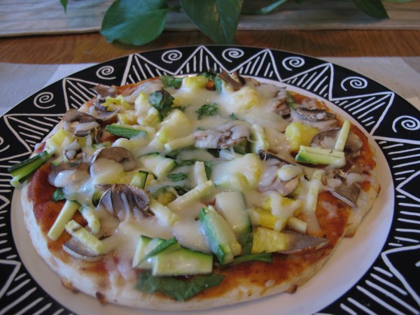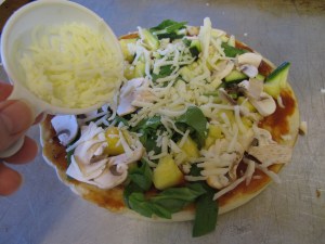 This was such a great little pizza! I loved it! This really isn’t a “recipe” but just a great idea for a quick meal. Use any veggies that you have in your frig – plus I added a little pineapple. Delicious and very filling!