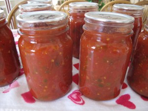 Place in clean pint bottles and process 40 mins. (Instructions in this blog are listed under Vegetables – – Tomatoes – Canning).