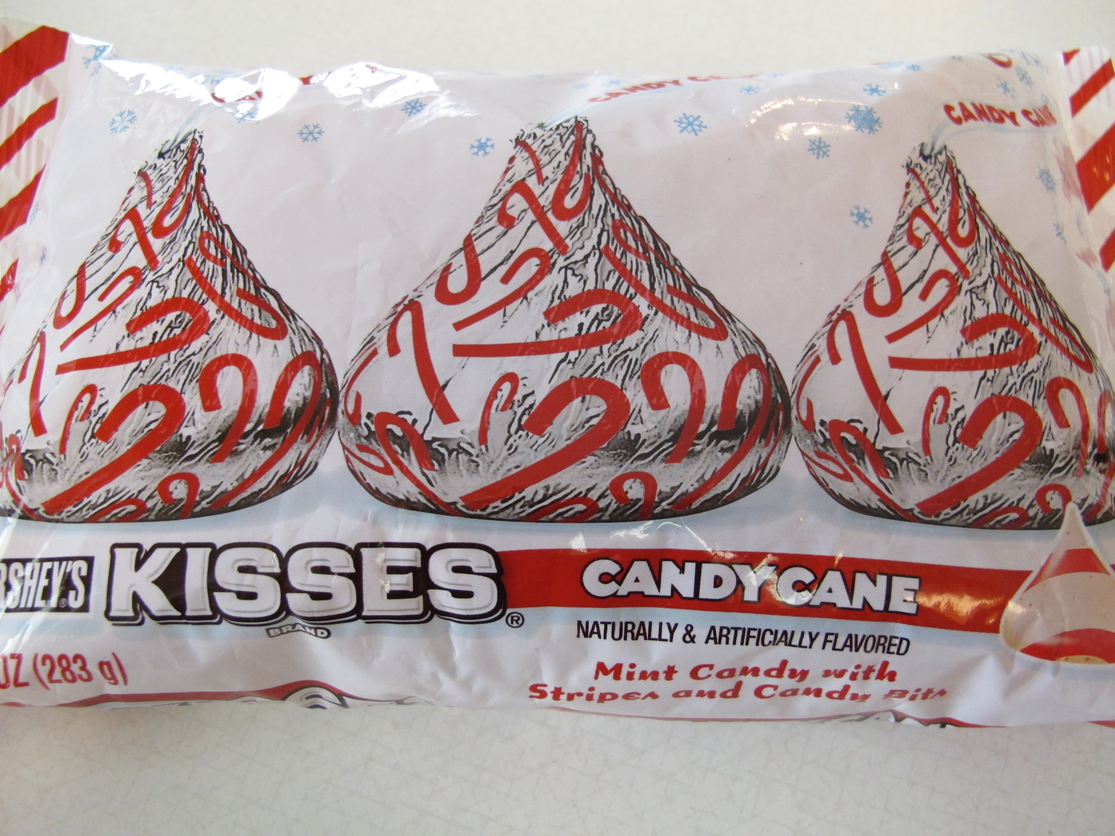 These are the Candy Cane Kisses that you can find at Christmas time. They make a beautiful Christmas cookie!