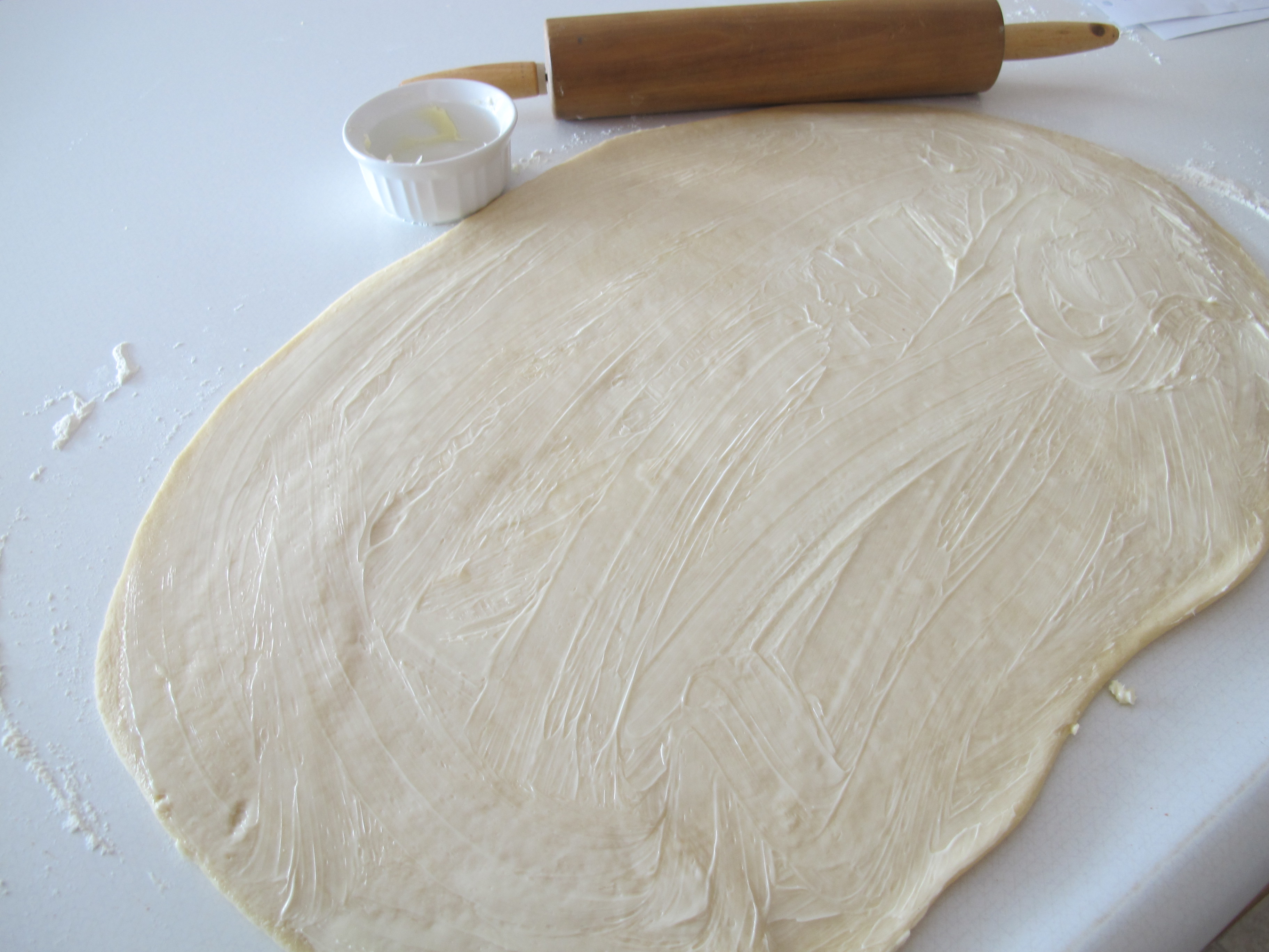 Roll dough into a large rectangle, making sure not to roll it too thin.