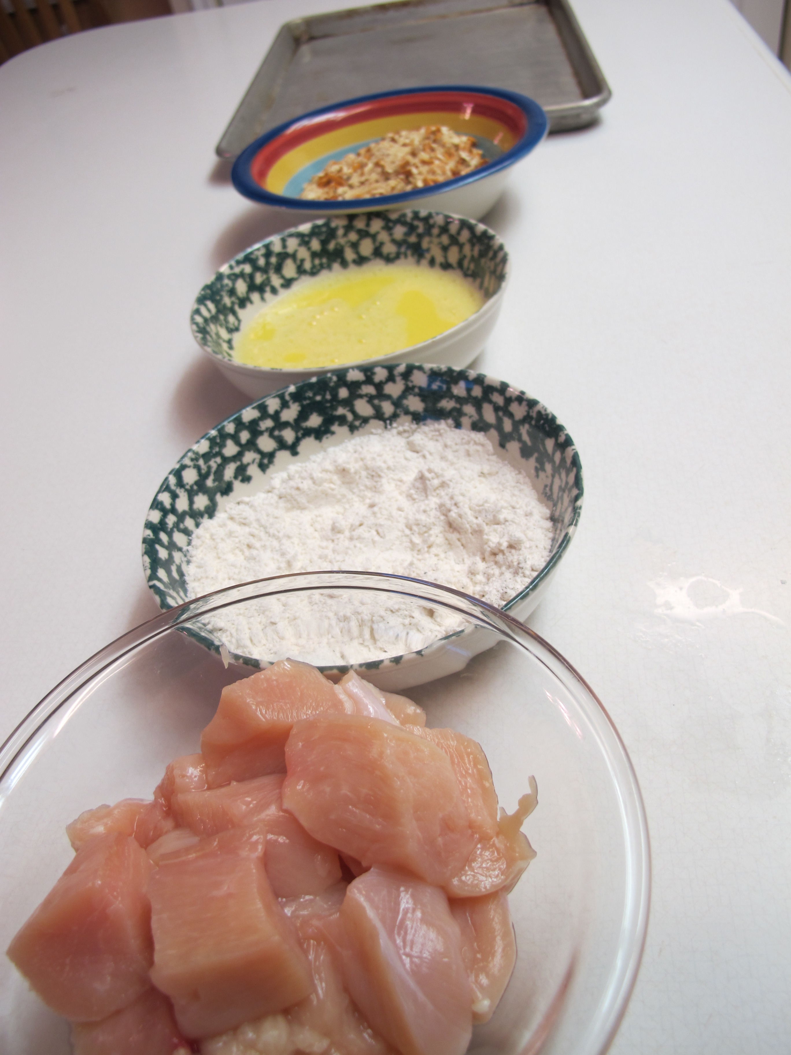 These tasty little chicken nuggets make a great appetizer or meal. Choose your favorite sauce to dip them in.