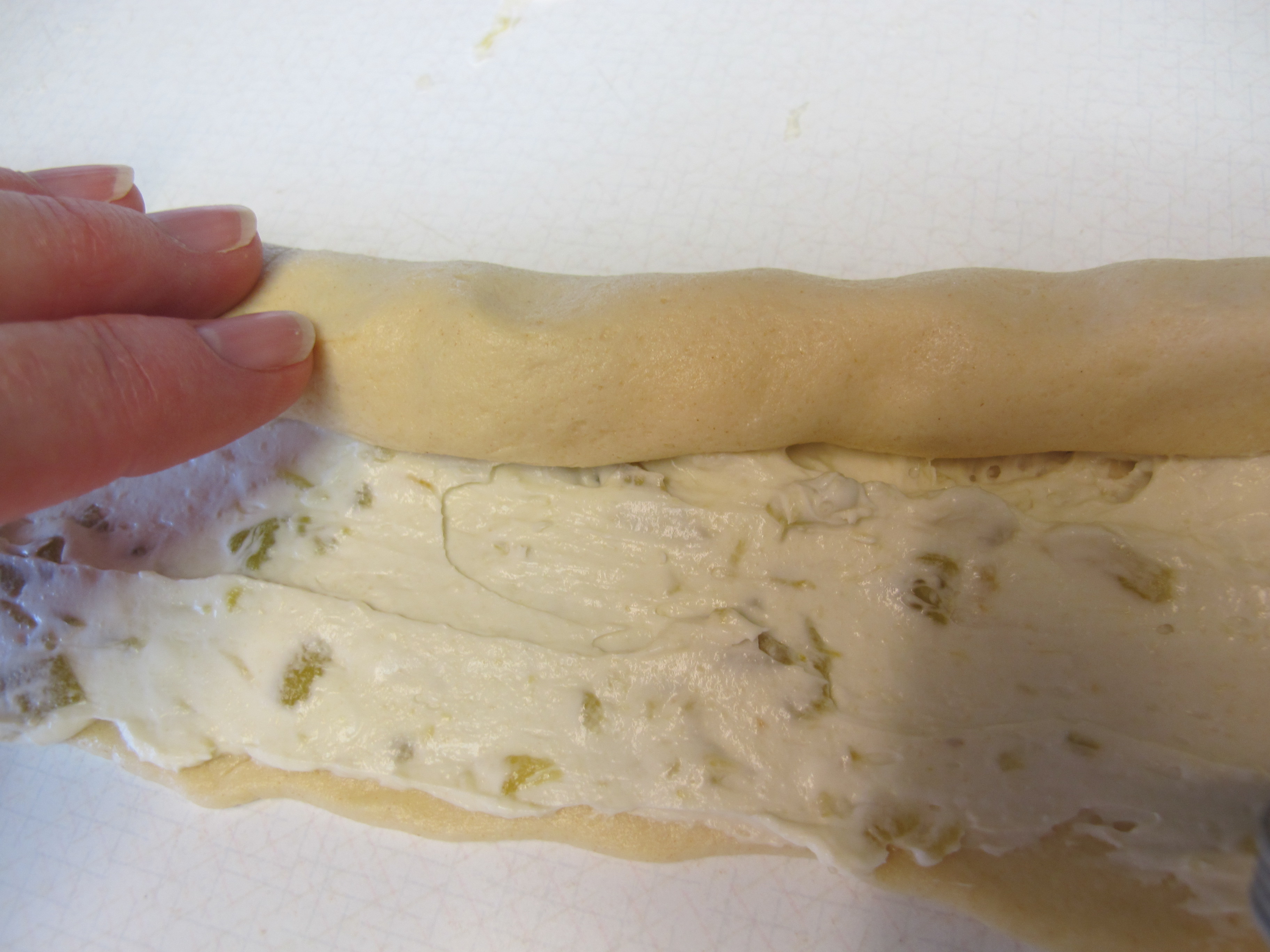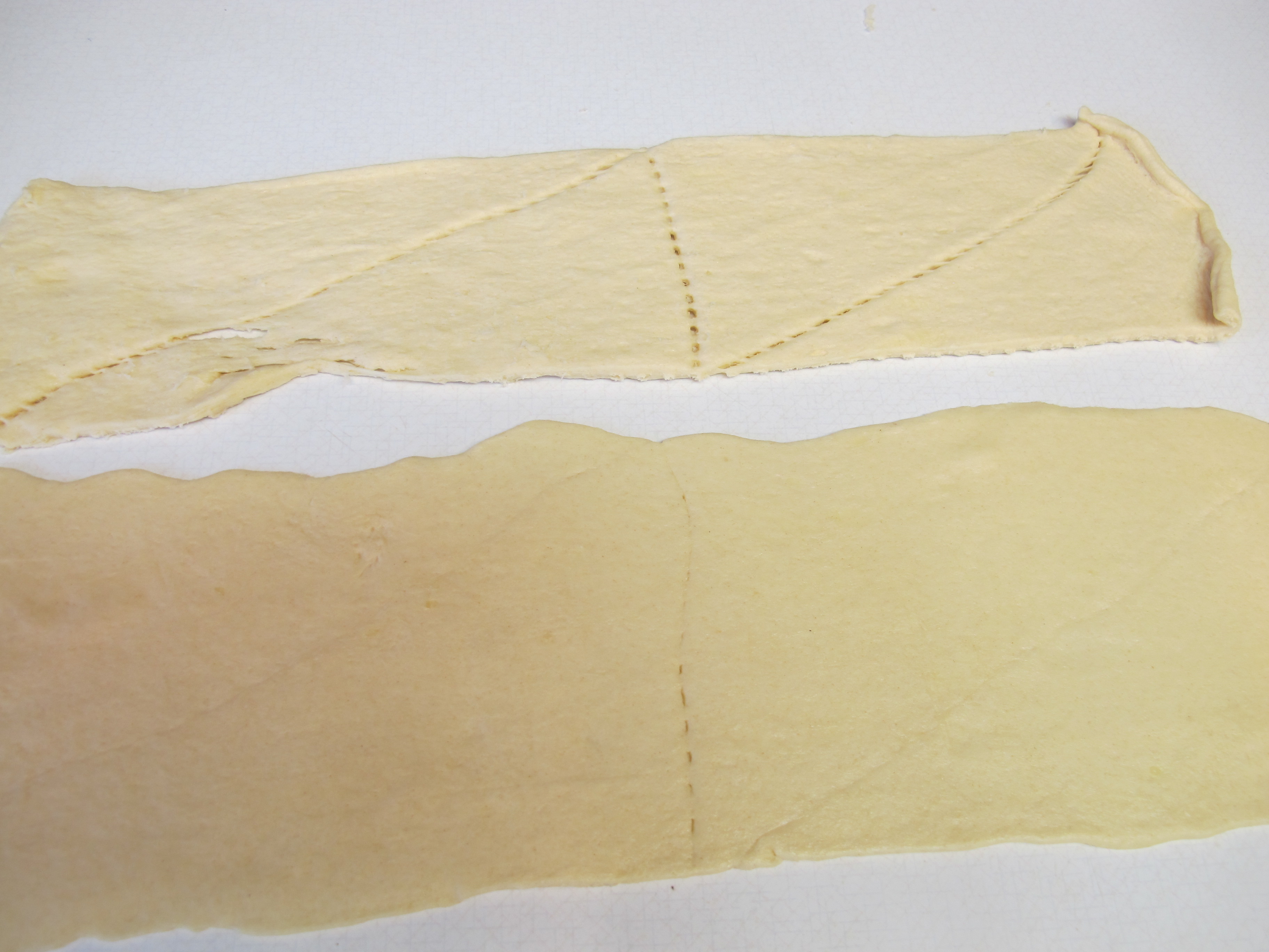 Open up your crescent rolls, separating them into two long rectangles. Do not separate the triangles.