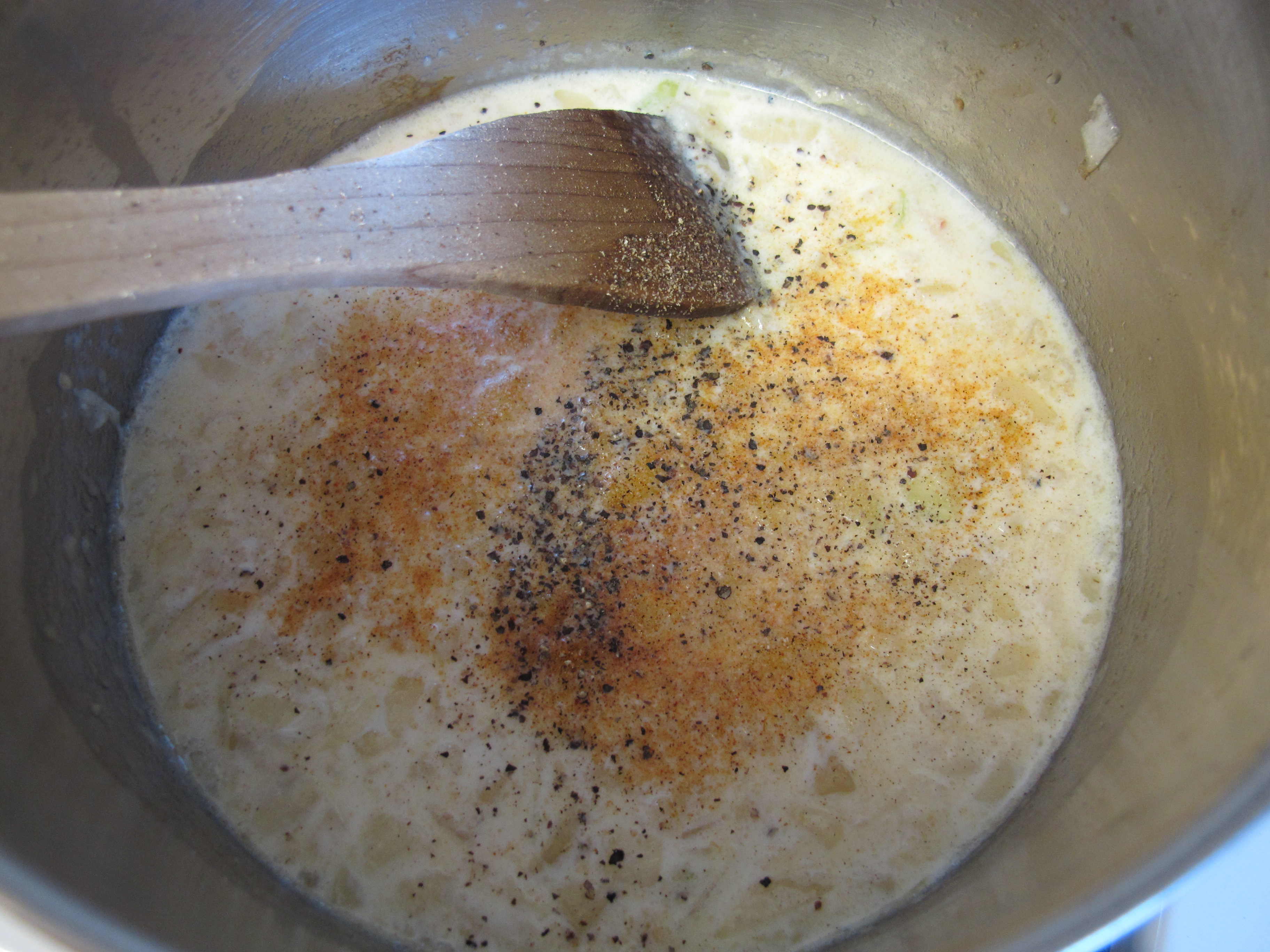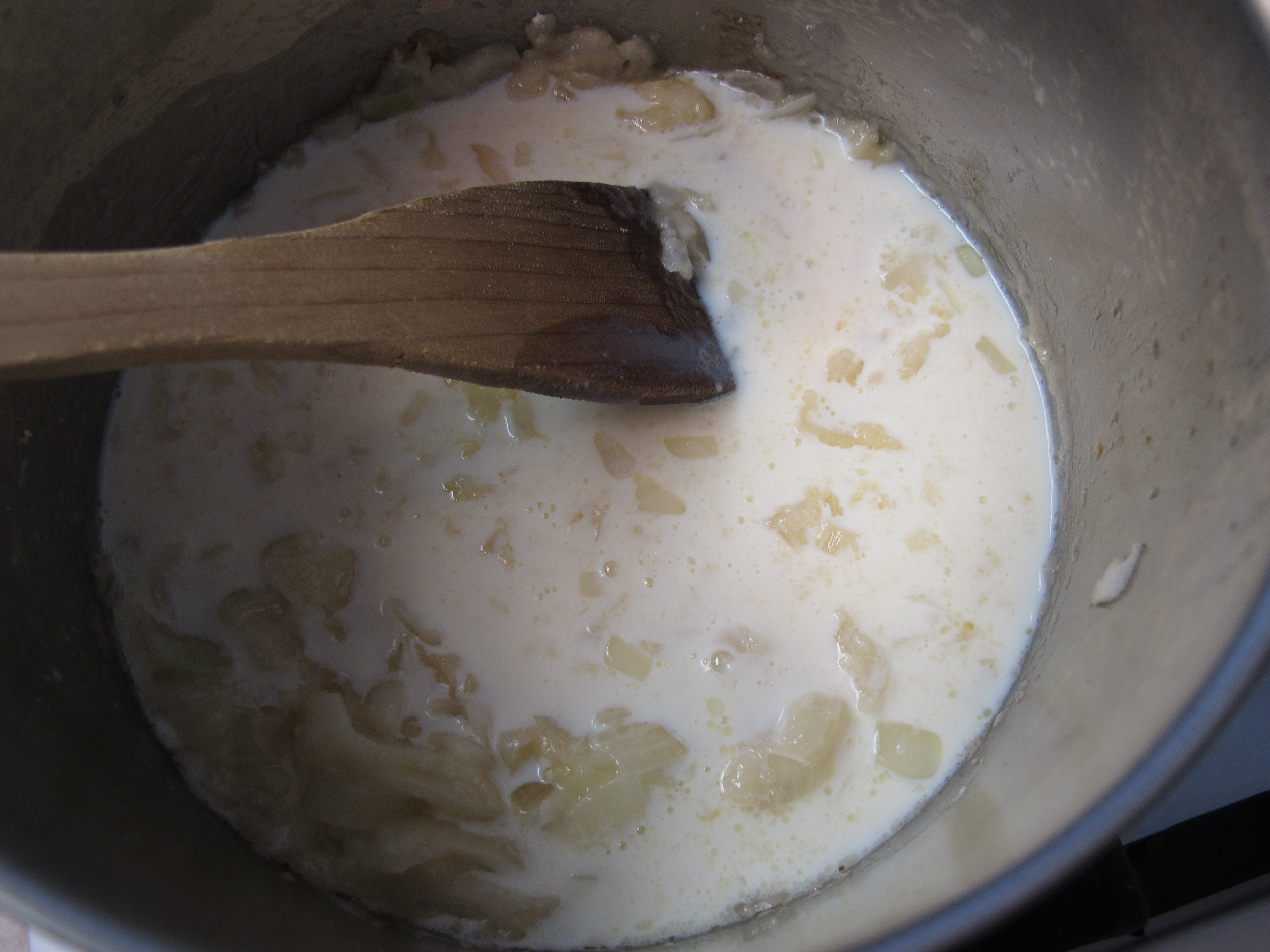 Add the milk and garlic.