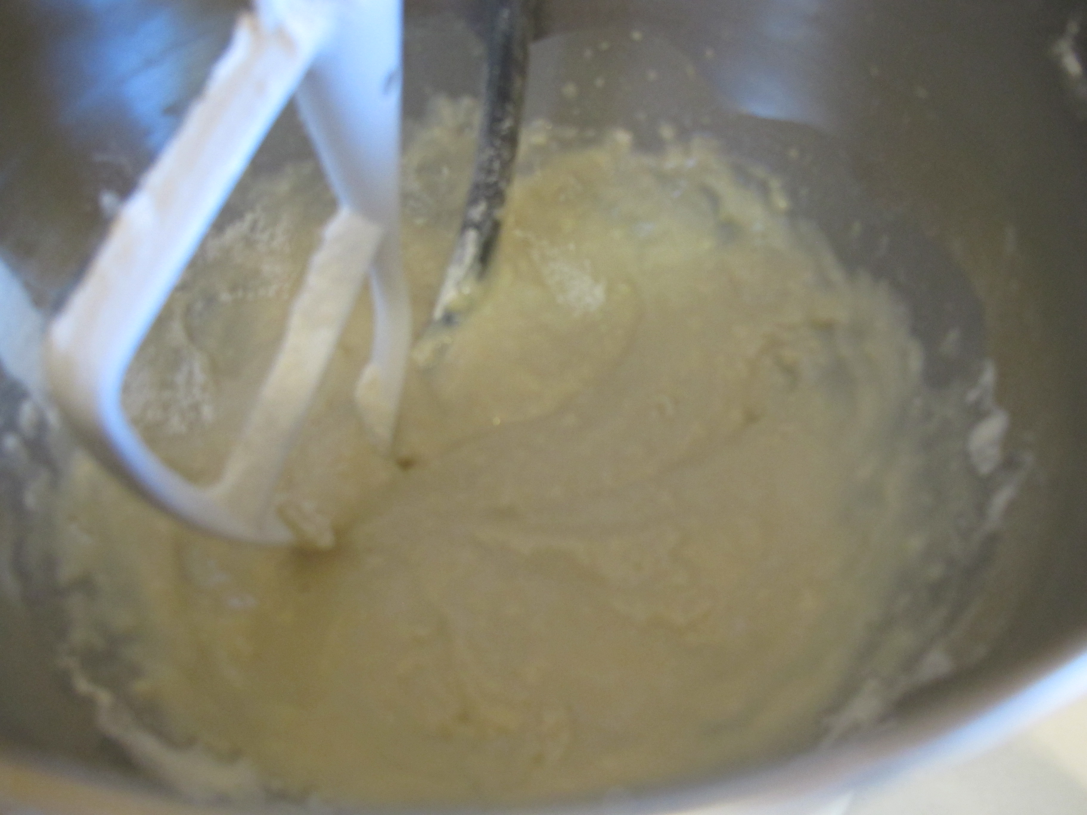 Combine yeast mixture, milk, 1/4 cup sugar and enough flour to make a medium batter (about the consistency of pancake batter). Beat thoroughly.