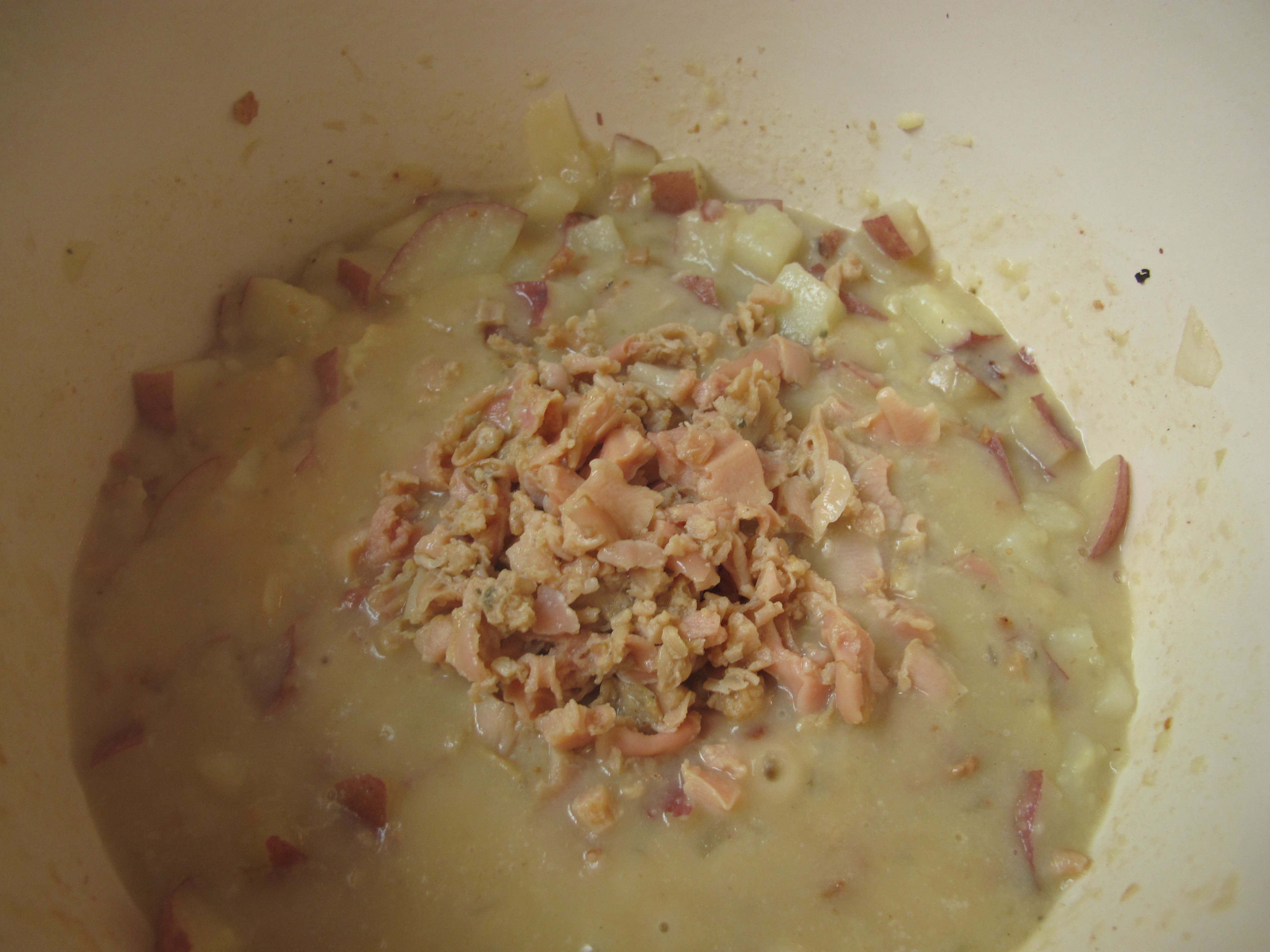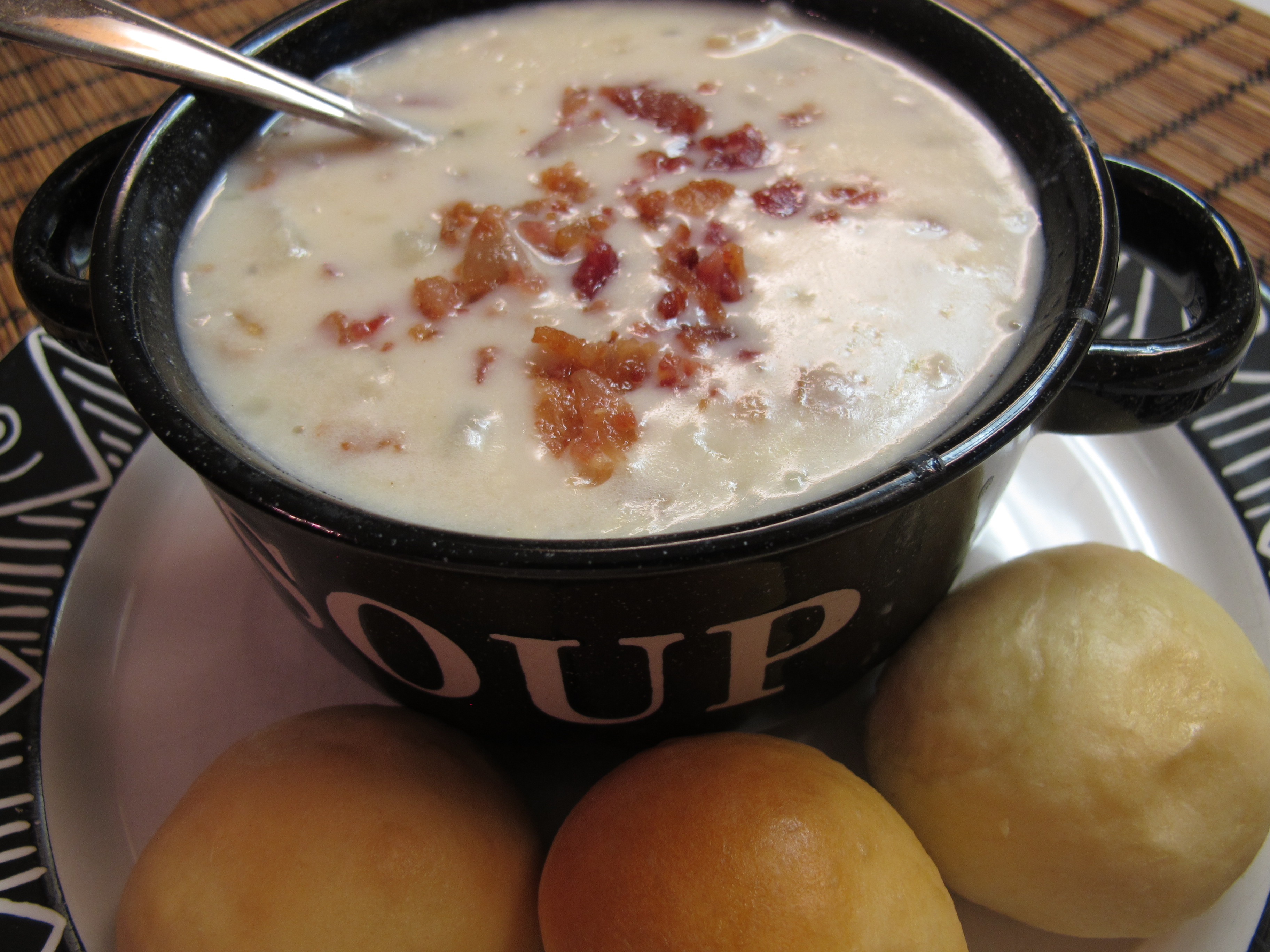My friend Janet comes through again with this delicious Clam Chowder recipe. Even though it is made with lower calorie ingredients, it still has such a rich flavor. I used red potatoes and left the skin on to give it some color. Using packaged crumbled bacon, makes this a quick and easy soup to throw together. It is not thick like your higher calorie chowders but still so very good!