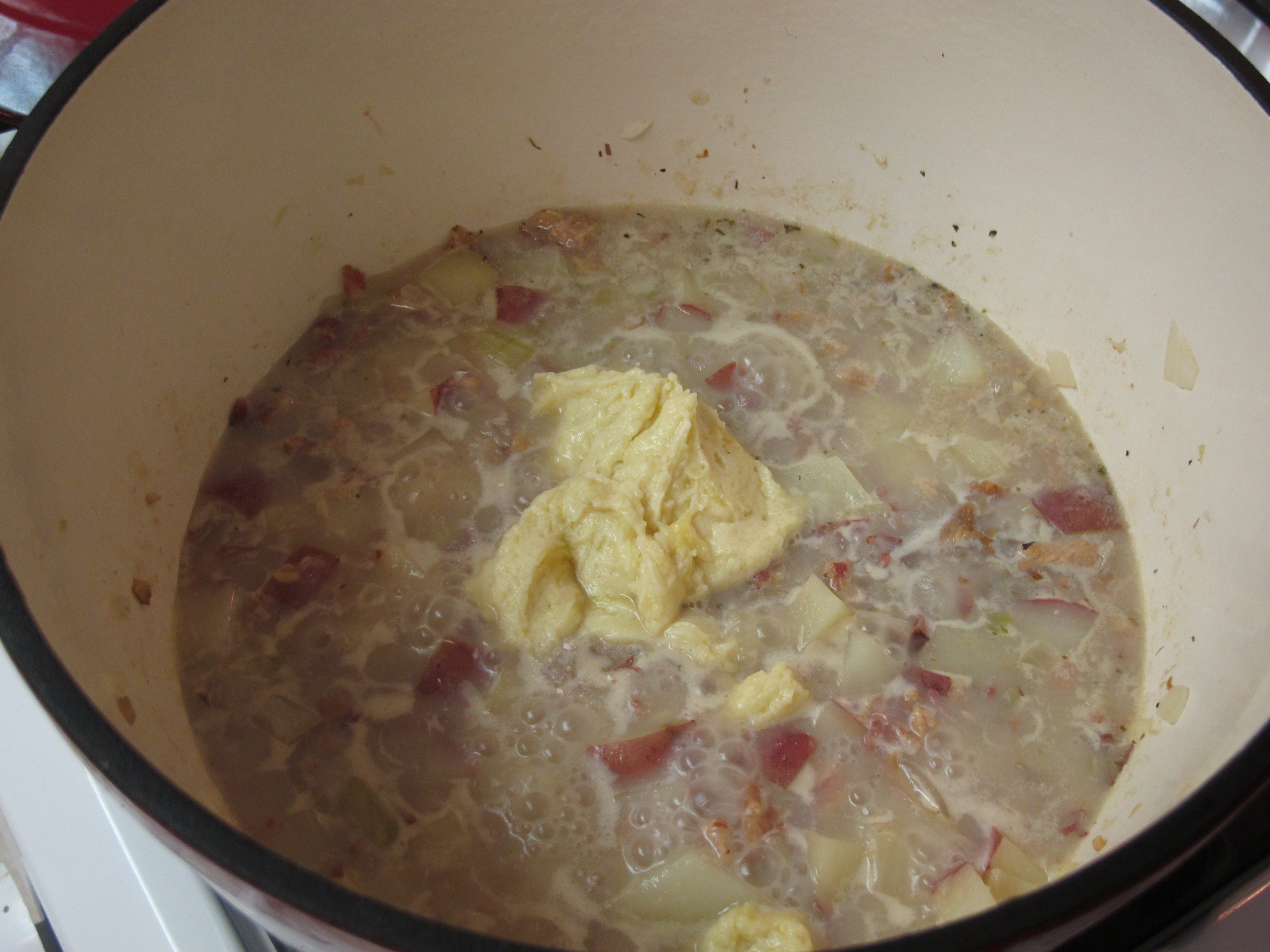Melt butter and stir in the flour. Add to potatoes mixture.