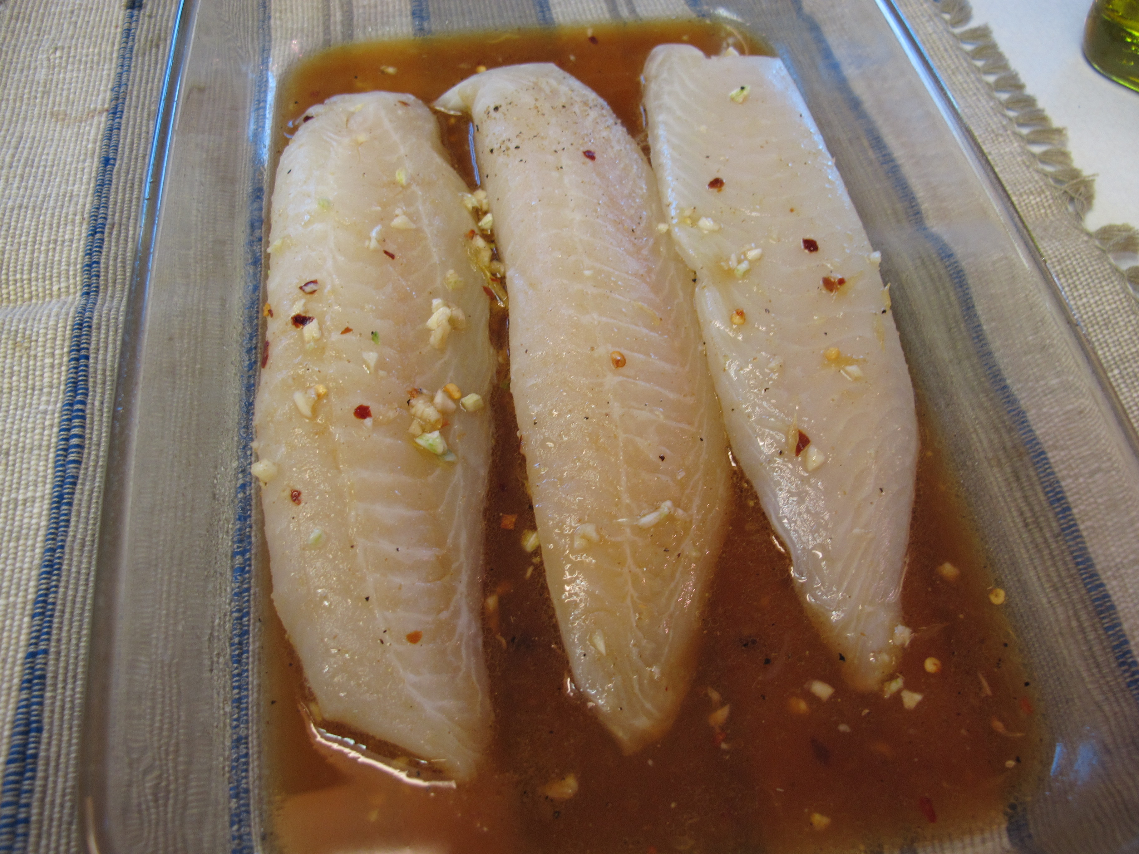 Pour over fish. Lift fish a bit so the marinade gets under it. Let stand for 20 minutes, turning fish half way through to marinate both sides.