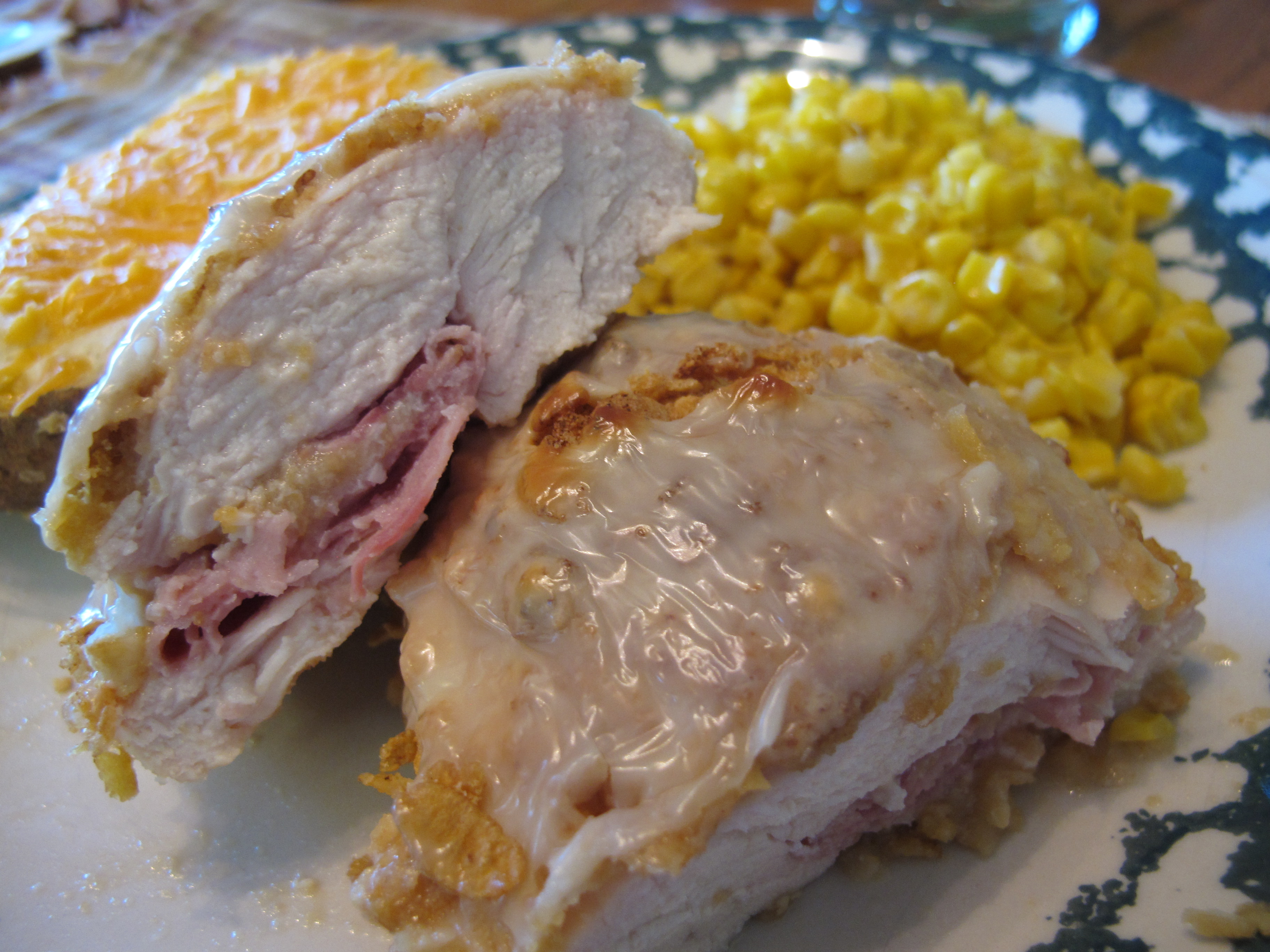 This is a very simple, quick meal to throw together. The seasoned corn flakes and the ham give this chicken a very nice flavor.