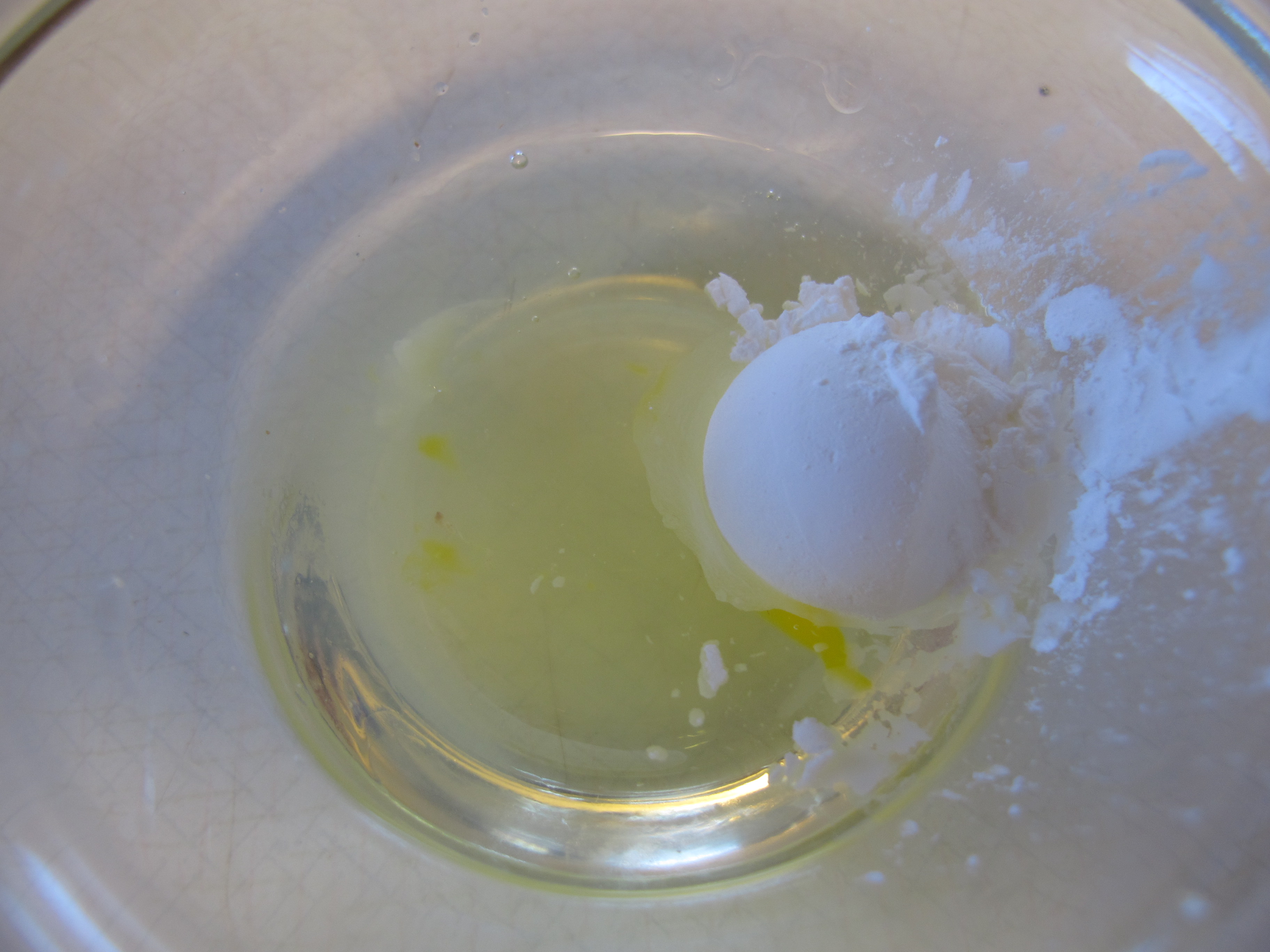 In a small bowl, combine the cornstarch and egg whites. Add a little water to thin down a bit. Pour this into a shallow bowl or pie plate.