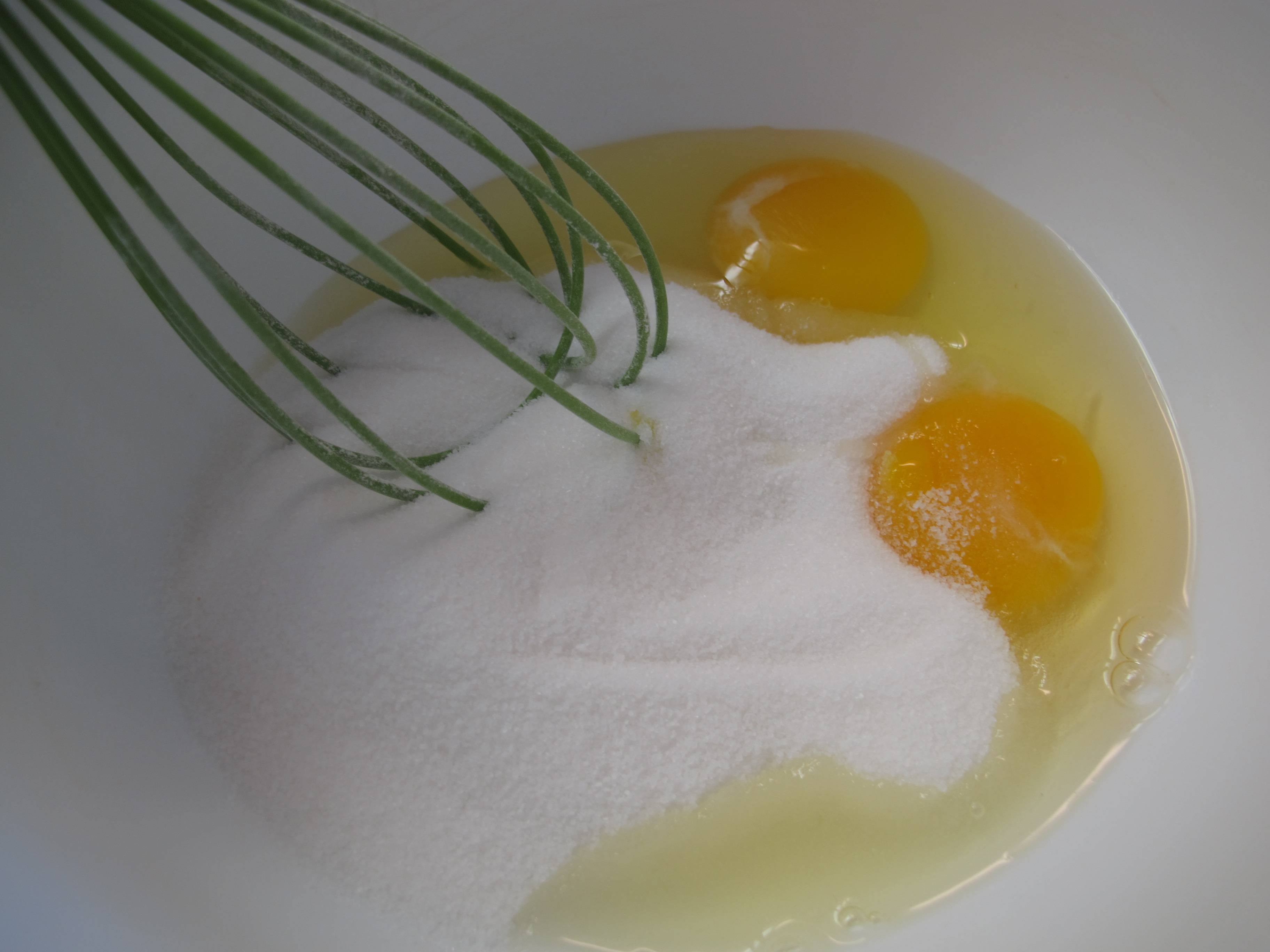 In a medium bowl, whisk together the eggs and sugar until combined.