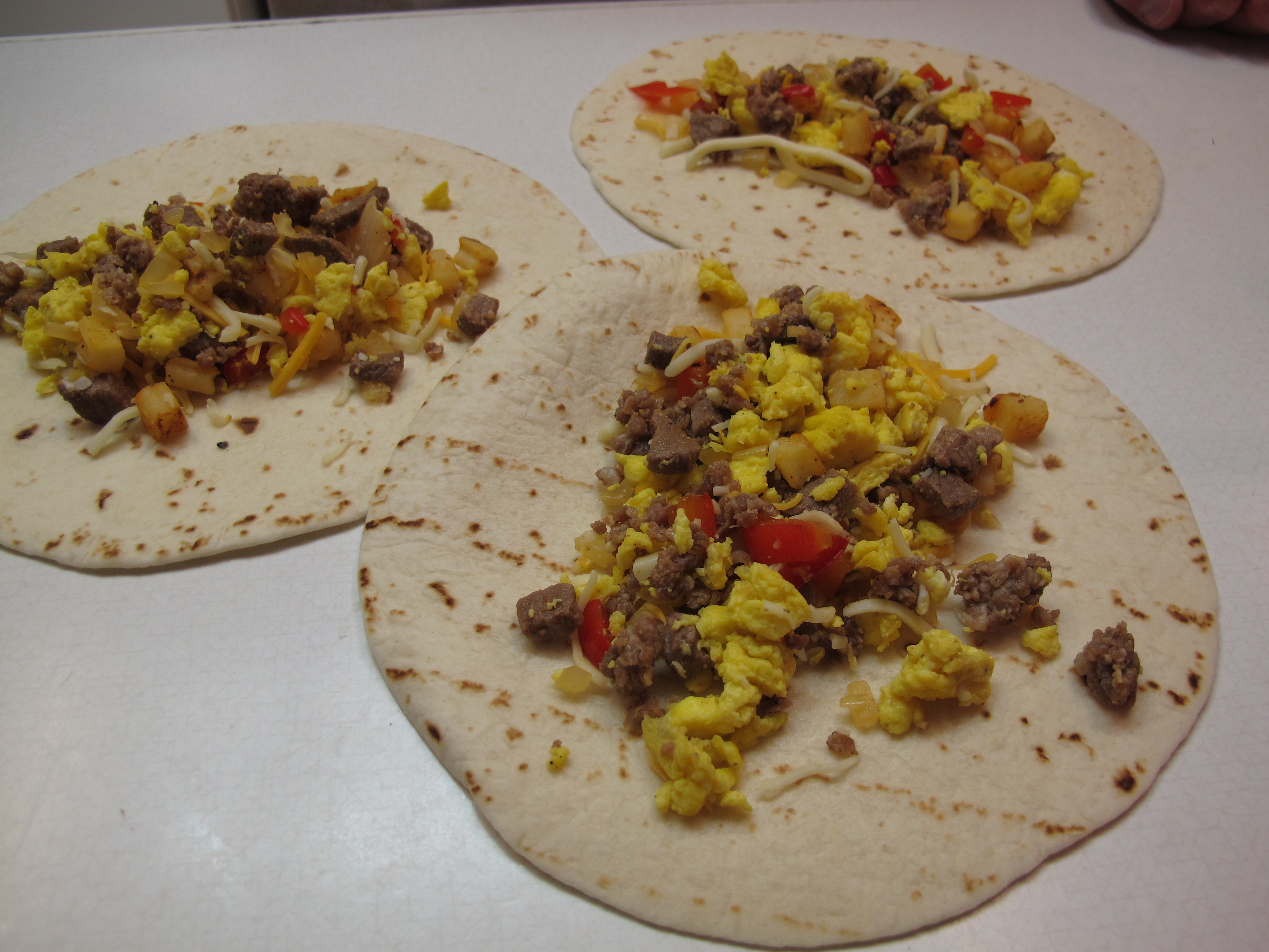 These Campurritos were prepared a few days before going camping and put in the freezer. We put them in the frig the night before to thaw out. They made for a fantastic breakfast!! Quick and Easy with no mess!