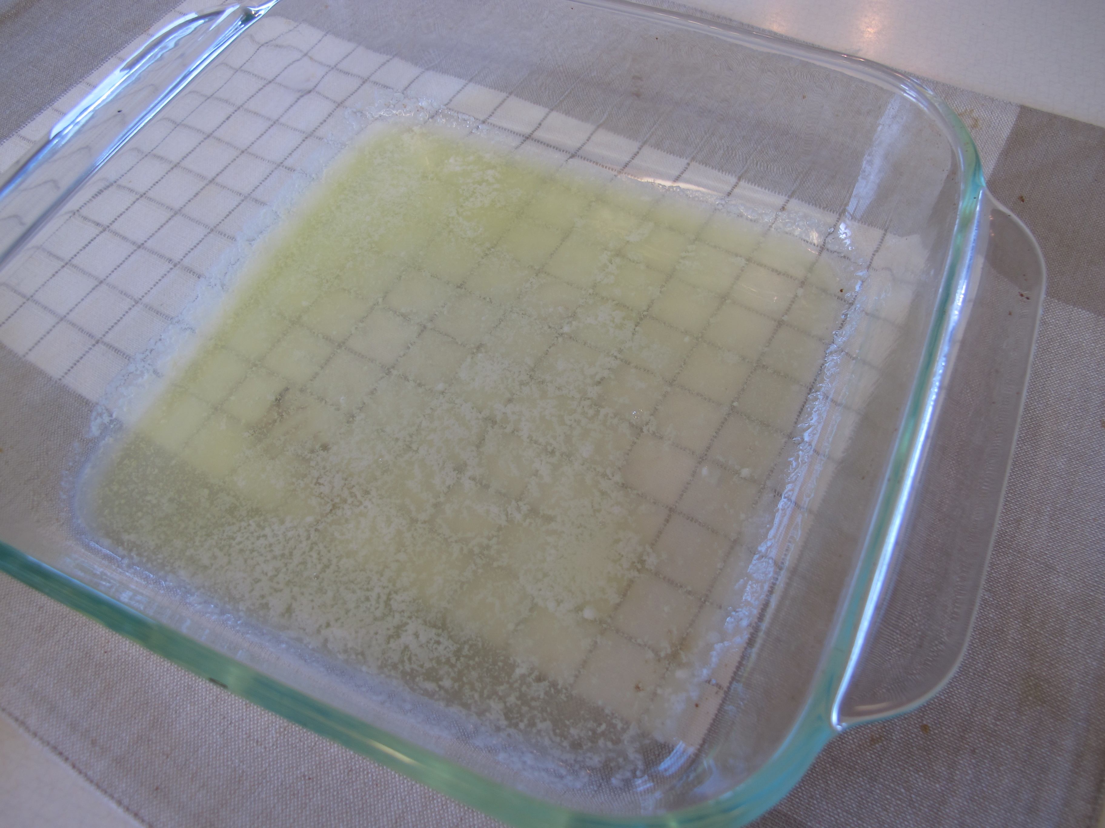 Butter the 8 x 8 glass pan and press half the crumb mixture on the bottom.