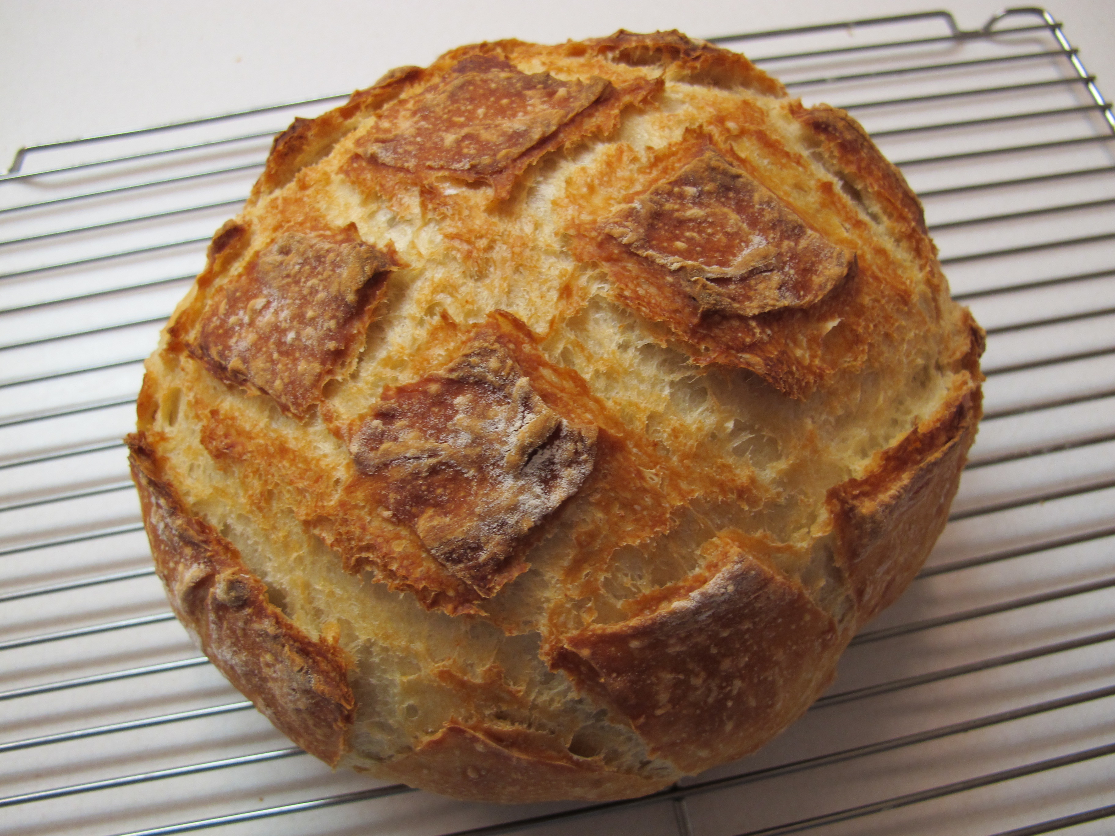 You can take your chance and just put your dough in the pot, cover it and be surprised when it comes out (picture at the very top) or you can score (cut) slightly into the dough before cooking it to plan your design – such as the picture below. At this point, the dough kind of bounces back when you try to cut into it. I found it easiest to use a sharp floured knife to cut a design into the dough. Just “dip” or “stab” your knife into your flour container before each slice. You can also use a sharp razor blade.